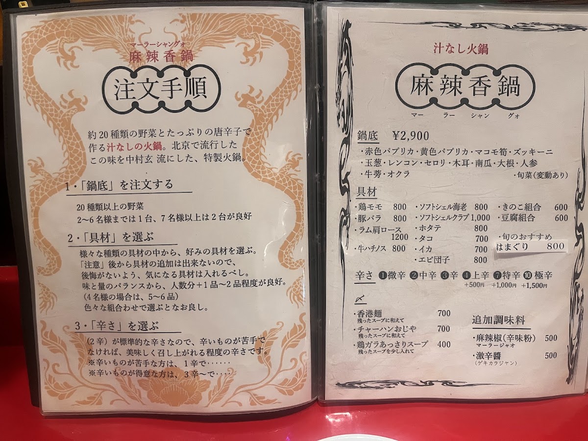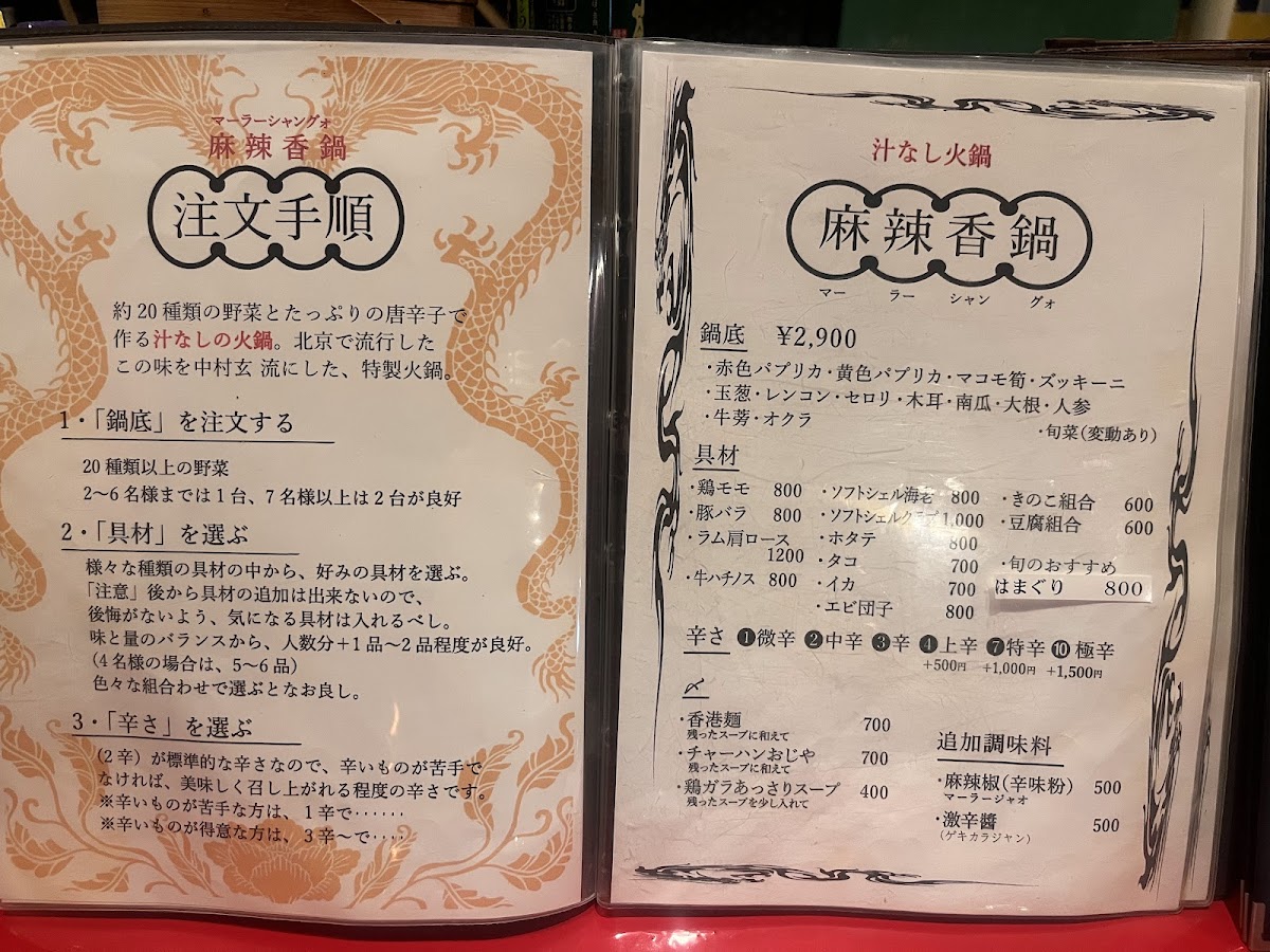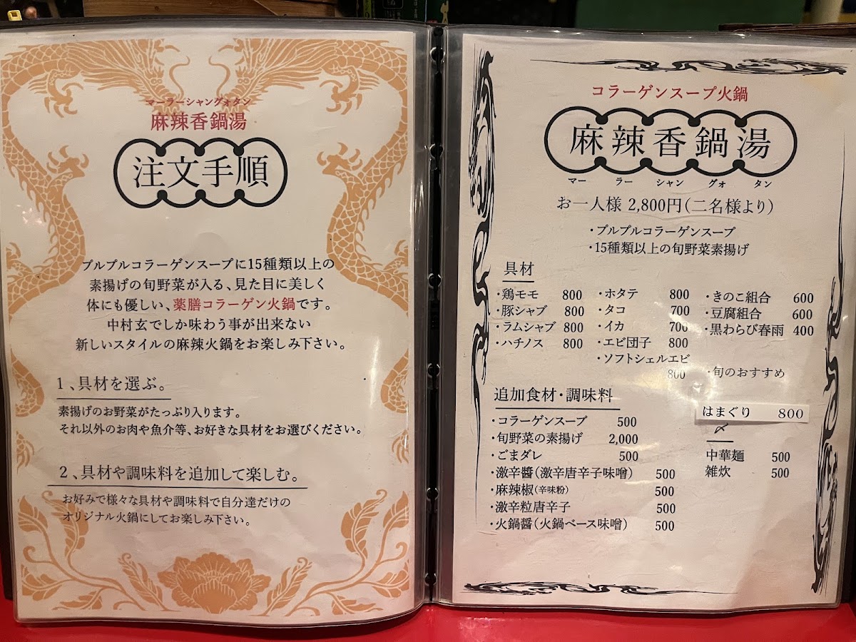 Step into Nakamura Gen, a hidden gem nestled in the vibrant streets of Shibuya, Tokyo. Known for its enticing Chinese ethnic recipes, Nakamura Gen promises a culinary adventure that is both spicy and deeply flavorful. The menu features a standout signature dish: the soup-less hot pot. This interactive dining experience invites diners to relish the ritual of picking out red chili peppers while soaking in the rich, spicy broth. Options to finish off your meal with rice or noodles enhance this unique adventure.